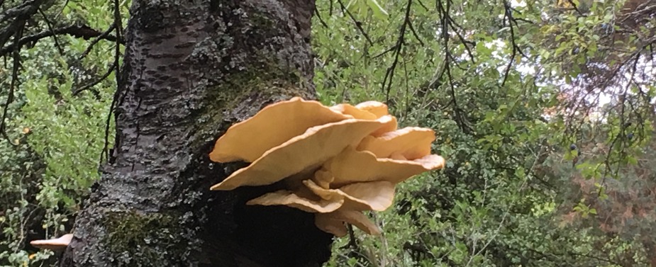 • Striegelige Tramete – besiedelt ausschließlich abgestorbenes Holz; helle Fruchtkörper, u.a. an Kirschbäumen.